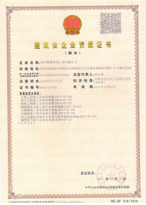 四川騰耀建筑工程有限公司(以下簡稱:四川騰耀)成立于2010年1月,注冊資金1168萬元,員工98人,其中各類注冊工程師62人(次),含高級職稱人員20人中級職稱人員42人,各類評標(biāo)專家15人,既有較強的專業(yè)知識,又有豐富的實踐經(jīng)驗;擁有各類設(shè)備200余臺(套)。